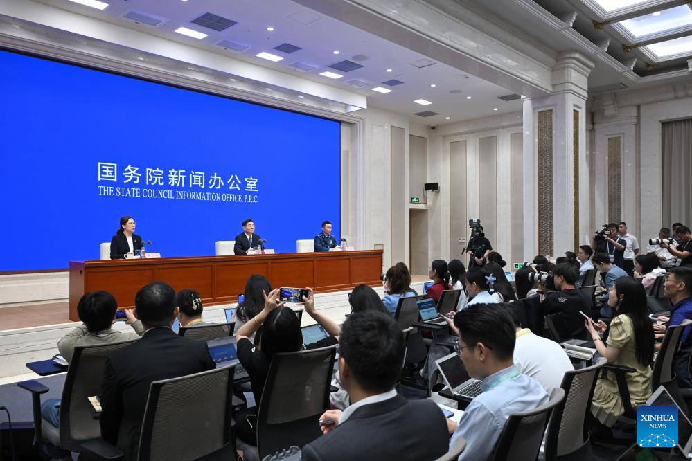 China's State Council Information Office holds a press conference on plans for marking the 80th anniversary of the victory in the Chinese People's War of Resistance Against Japanese Aggression and the World Anti-Fascist War, in Beijing, capital of China, June 24, 2025. Hu Heping, executive vice minister of the Publicity Department of the Communist Party of China Central Committee, and Major General Wu Zeke, deputy director of the Leading Group Office of Military Parade and deputy director general of the Operation Bureau of the Joint Staff Department of the Central Military Commission, briefed the media on the arrangement of commemorative activities and took questions. (Xinhua/Jin Liangkuai)