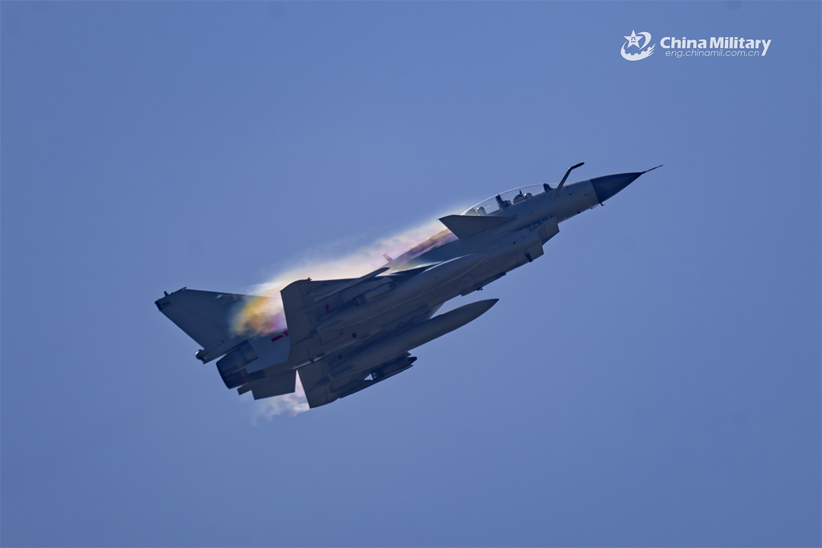 A J-10 fighter jet attached to the Chinese PLA Air Force soars into the sky during a flight training exercise. (eng.chinamil.com.cn/Photo by Xiao Rui)