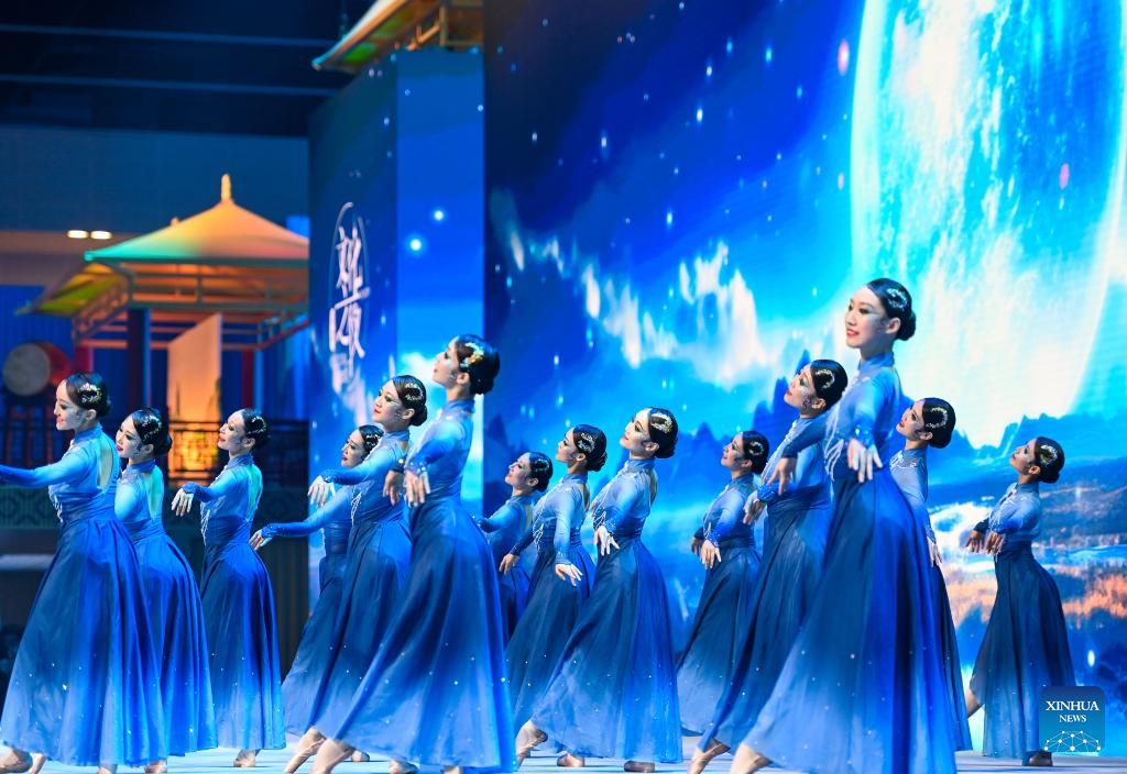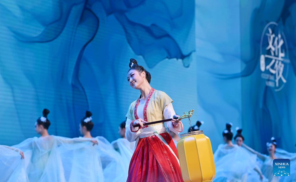 Artists perform during the Cultural Soiree of the 16th Annual Meeting of the New Champions, also known as the Summer Davos, in north China's Tianjin Municipality, June 25, 2025. Attendees learned about traditional Chinese culture, tasted characteristic food of Tianjin and enjoyed performances at the event. (Xinhua/Li Ran)