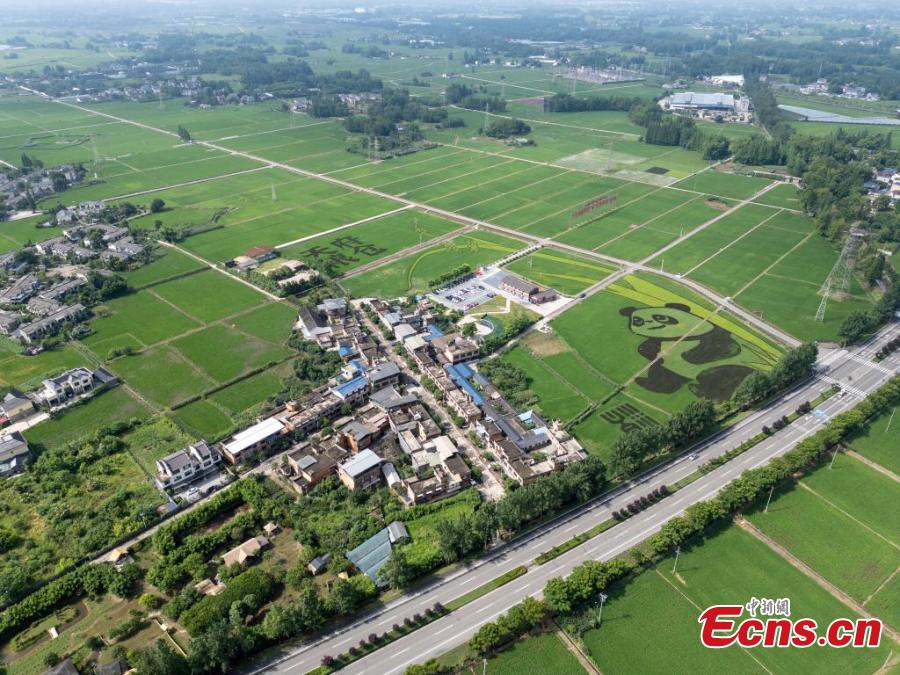 A giant panda pattern is created in a vast rice field at the Tianfu Granary National Modern Agricultural Industrial Park in Chengdu, southwest China's Sichuan Province, June 25, 2025. (Photo: China News Service/Zhang Lang)