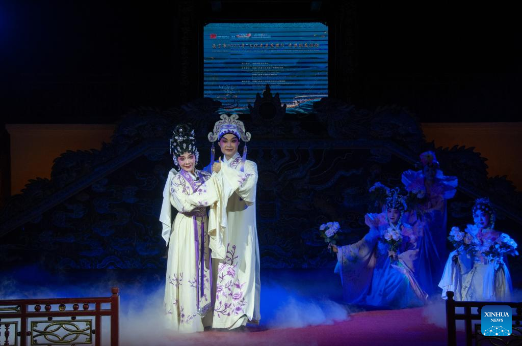 A traditional Chinese opera performance is staged in the central Vietnamese city of Hue on June 29, 2025. A troupe from China's Guangxi Zhuang Autonomous Region staged a traditional Chinese opera performance in the central Vietnamese city of Hue on Sunday. Held at the Royal Theater inside the Imperial City of Hue, the event showcased a variety of Chinese opera styles and attracted an audience including Chinese and Vietnamese officials as well as local residents. (Xinhua/Dang Hong Dung)