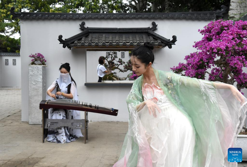 Actresses perform at a flower exhibition during a lotus festival at Yuanmingyuan Park in Beijing, capital of China, June 28, 2025. A lotus festival kicked off in Yuanmingyuan Park on Saturday and will run until Aug. 31. (Xinhua/Luo Xiaoguang)
