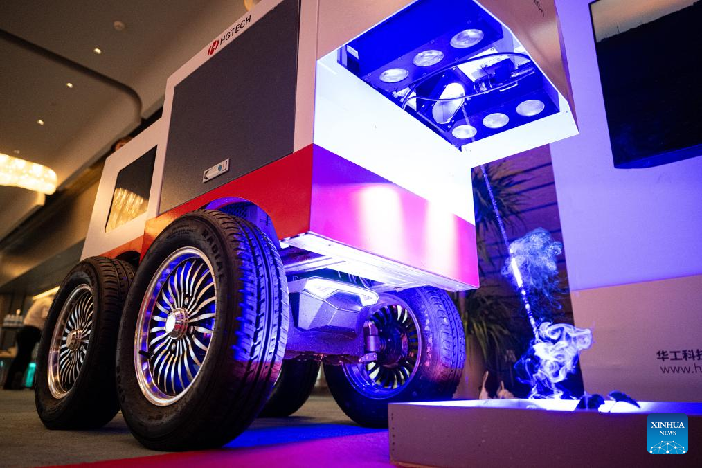 The robot, Hg LaserWeeder, was showcased on Saturday at an event hosted by Huagong Technology Industry Co., Ltd., one of its developers, in Wuhan, capital of central China's Hubei Province.