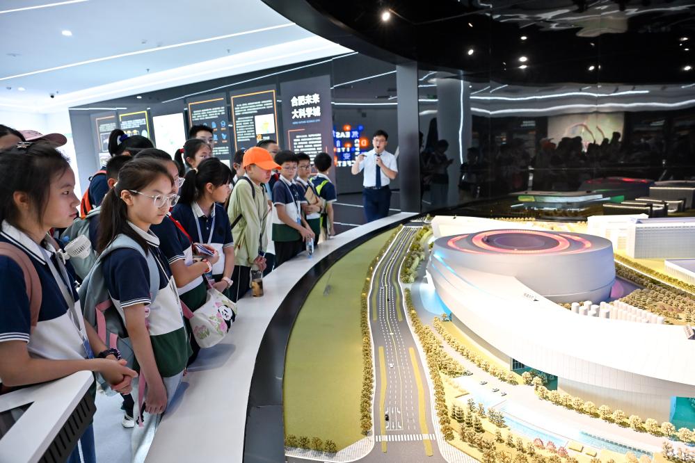 Students view a model of the Burning Plasma Experimental Superconducting Tokamak (BEST) at an exhibition hall in Hefei, capital of east China's Anhui Province, July 1, 2025. (Xinhua/Zhang Cheng)