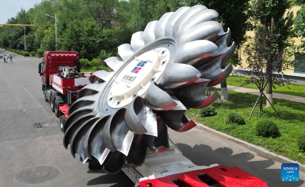 This photo taken on July 2, 2025 shows a scene of the delivery ceremony for the newly developed impulse turbine at the factory area of Harbin Electric Machinery Company Limited under Harbin Electric Corporation in Harbin, northeast China's Heilongjiang Province.