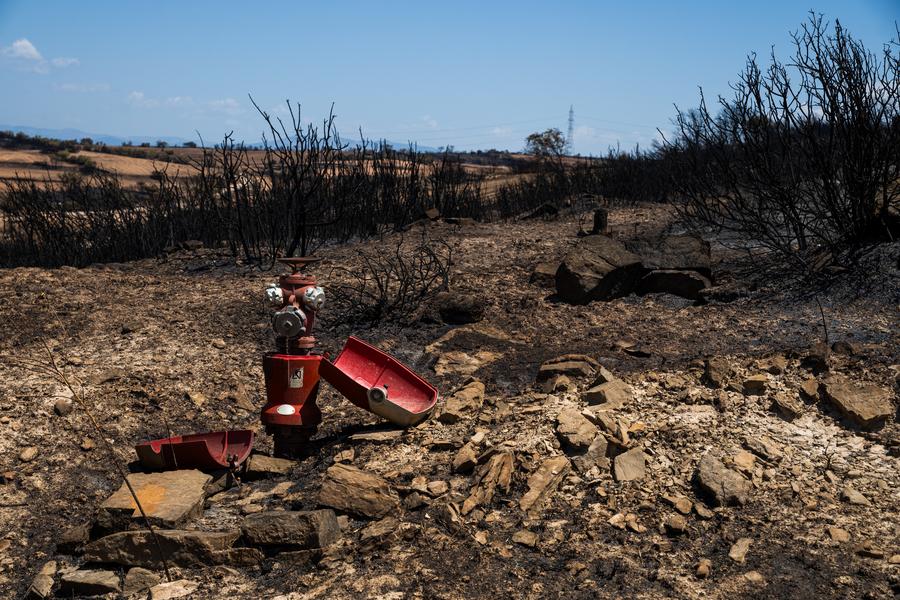 This photo taken on July 2, 2025 shows the burned land in Lleida province, Spain. Two farmers were killed in a wildfire that burned through 5,000 hectares in the La Segarra district of Lleida province, north-east Spain, on Tuesday, according to local emergency services. (Photo by Joan Gosa/Xinhua)