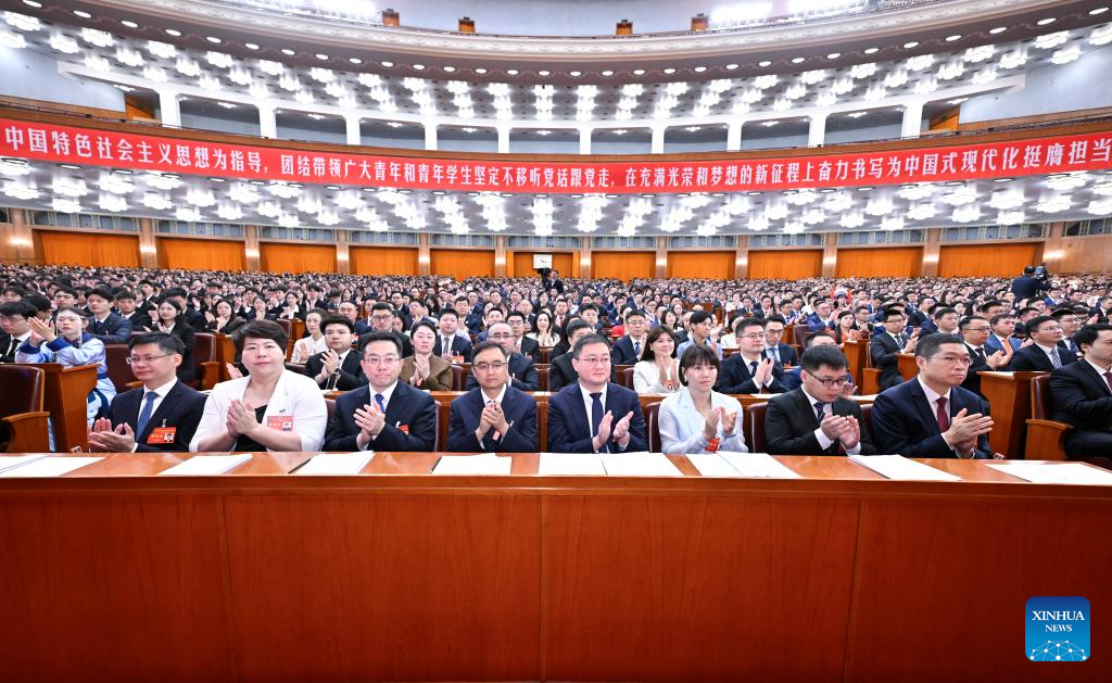 A session of the All-China Youth Federation and a congress of the All-China Students' Federation open in Beijing, capital of China, July 2, 2025. (Xinhua/Yue Yuewei)