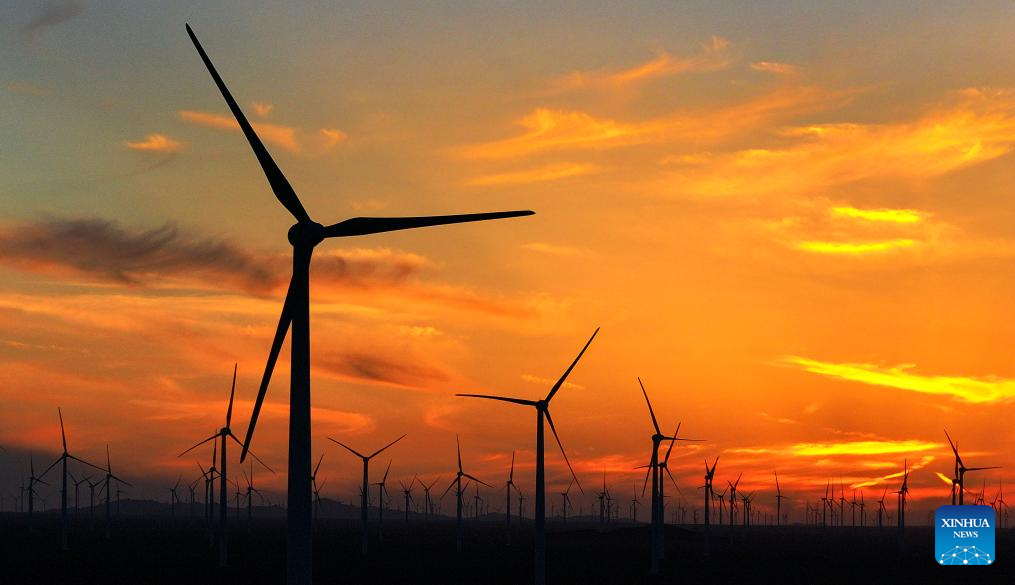 A drone photo taken on Sept. 10, 2024 shows a view of the Santanghu wind power farm in Hami, northwest China's Xinjiang Uygur Autonomous Region. (Xinhua/Hu Huhu)