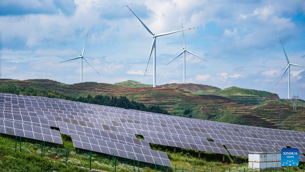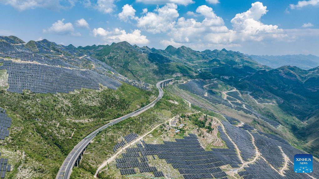 This photo shows photovoltaic panels of a solar power station for agricultural use in the Yi-Hui-Miao Autonomous County of Weining, southwest China's Guizhou Province, July 3, 2025. In recent years, Guizhou has made significant progress in ecological construction, striving to transform ecological advantages into developmental strengths.
