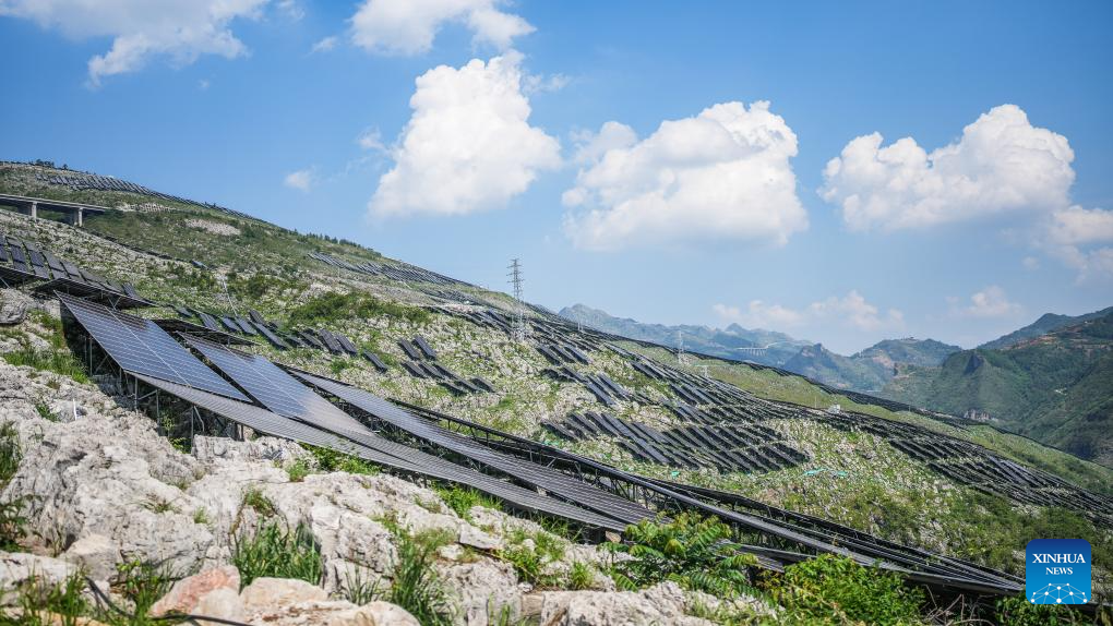 This photo taken on May 23, 2024 shows the Panjiang million-kilowatt photovoltaic base project in the Bouyei-Miao Autonomous County of Guanling, southwest China's Guizhou Province. In recent years, Guizhou has made significant progress in ecological construction, striving to transform ecological advantages into developmental strengths.