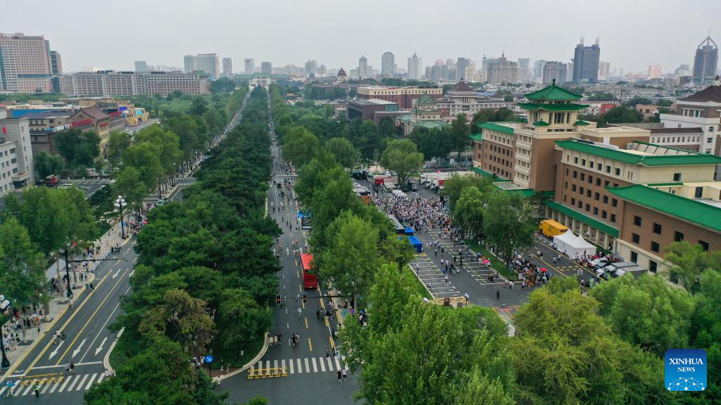 An aerial drone photo taken on July 5, 2025 shows visitors on Xinmin Street in Changchun, northeast China's Jilin Province. Xinmin Street, a historical and cultural street in Changchun of Jilin Province, officially opened to the public on Saturday following renovation.