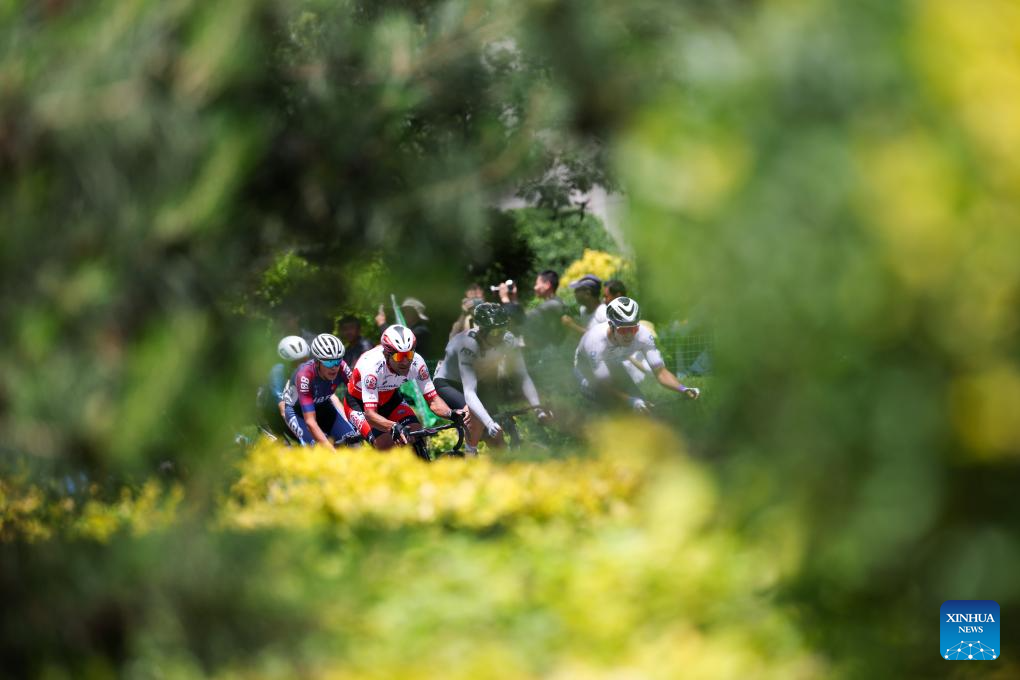 Cyclists start during Stage 1 of the Tour of Magnificent Qinghai international road cycling race in Xining, northwest China's Qinghai Province, July 6, 2025. (Xinhua/Qi Zhiyue)