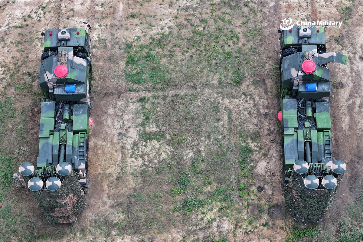 Surface-to-air missile systems attached to a surface-to-air missile unit with the air force under the Chinese PLA Eastern Theater Command get ready for launching during a comprehensive training exercise in late June, 2025. (eng.chinamil.com.cn/Photo by Liang Hongwei)