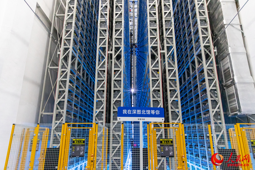 Photo shows an intelligent book repository at the north hall of Shenzhen Library in Shenzhen, south China's Guangdong Province. (People's Daily Online/Wang Xing)