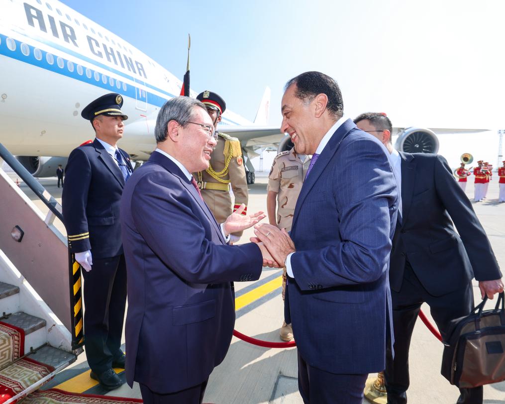 The Egyptian prime minister and senior government officials welcomed Li at the airport and held a welcome ceremony in his honor. Prior to his arrival, Li attended the 17th BRICS Summit in Rio de Janeiro, Brazil.