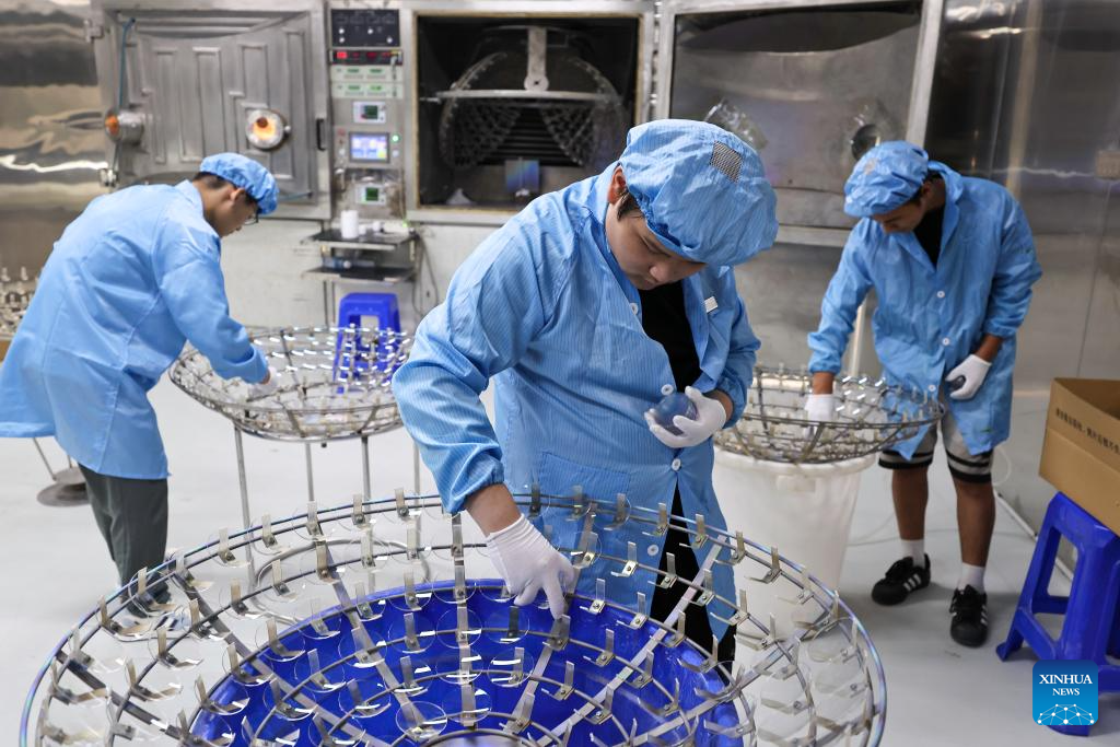Staff members clean the lenses before coating at the workshop of Keqiang Optics Co., Ltd. in Yujiang District of Yingtan, east China's Jiangxi Province, July 10, 2025. The eyewear industry is a traditional sector in Yujiang District, with sales organizations dating back to the Qing Dynasty (1644-1911). Today, Yujiang ranks among the top eyewear industry bases in China, attracting numerous well-known enterprises. From handcrafted eyewear over 200 years ago to the smart glasses today, Yujiang has written a centuries-long legend in the field of optics. (Xinhua/Liu Jinhai)