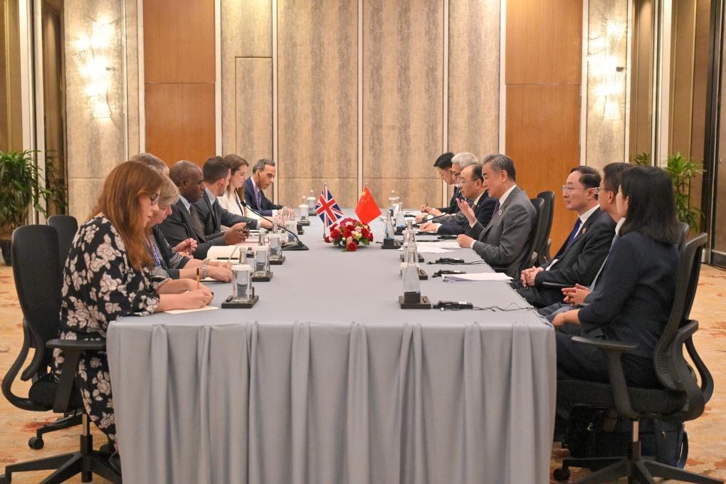 Noting that this year marks the 80th anniversary of the victory of World War II, Wang said that, as co-creators of the post-war order and permanent members of the UN Security Council, China and Britain should also jointly fulfill their international obligations, safeguard the fruits of victory in World War II, maintain the free trade system, and make new contributions to world peace and development.