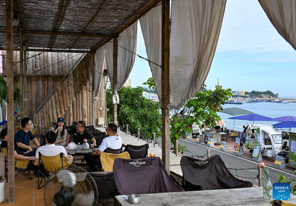 Tourists relax at a coffee shop in the Red Bay beach of Shanwei, a coastal city in south China's Guangdong Province, May 14, 2025. (Xinhua/Chen Shuo)