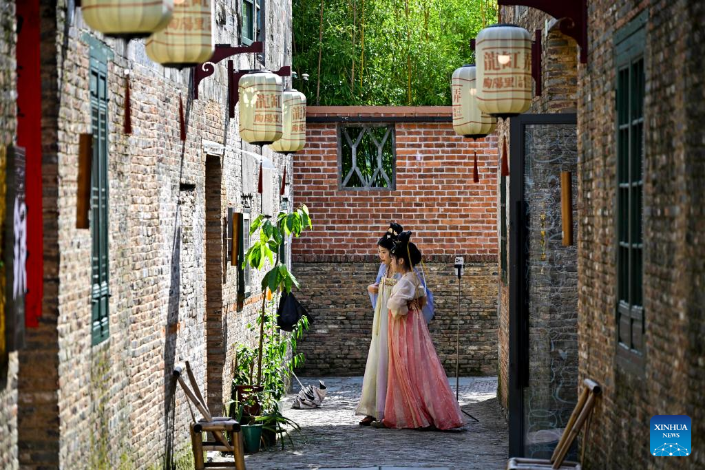 Tourists visit Taoyangli historical and cultural block in Jingdezhen City, east China's Jiangxi Province, July 13, 2025. Located in the heart of Jingdezhen, Taoyangli has successfully transformed from an old district into a thriving hub for cultural innovation and tourism in recent years. Today, it has become a must-visit destination for tourists. (Xinhua/Liu Jinhai)