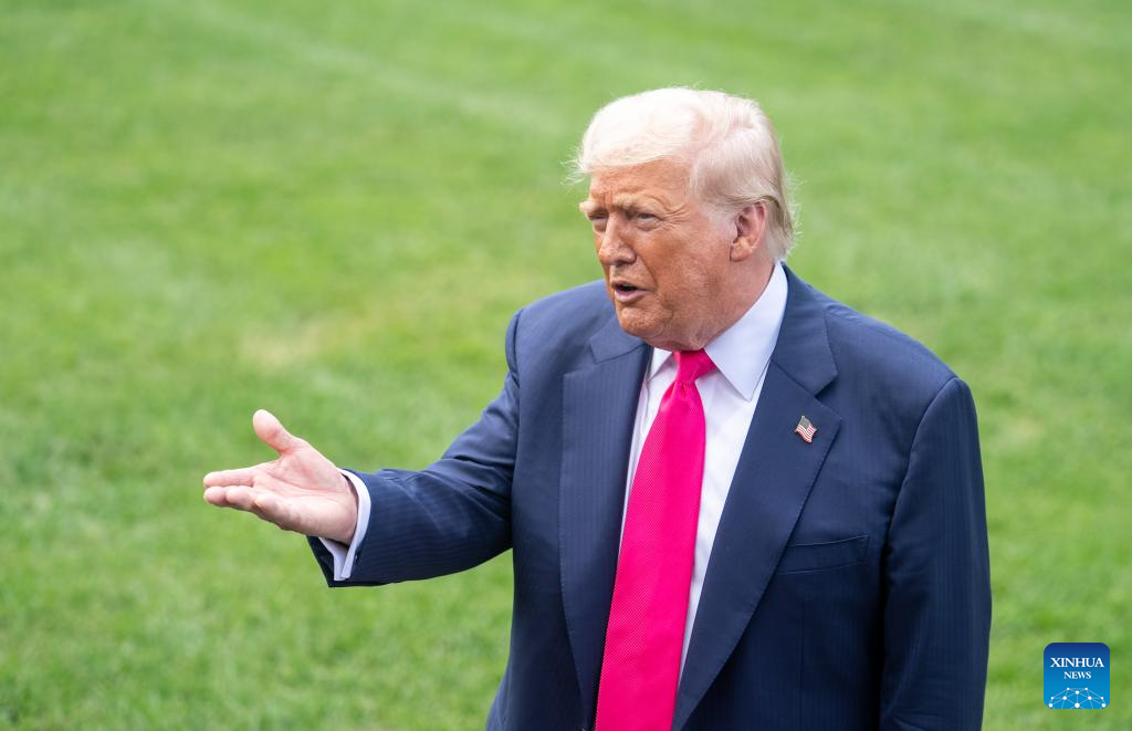 U.S. President Donald Trump speaks to reporters at the White House in Washington, D.C., the United States, on July 15, 2025. Trump announced Tuesday that a 19 percent tariff will be imposed on imports from Indonesia while the United States will pay nothing, local media reported. (Xinhua/Hu Yousong)
