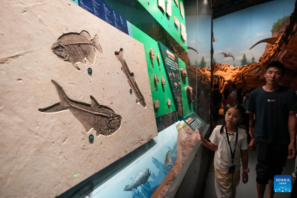 Visitors view exhibits at the world natural heritage museum of the Chengjiang Fossil site in Chengjiang County, southwest China's Yunnan Province on July 15, 2025.