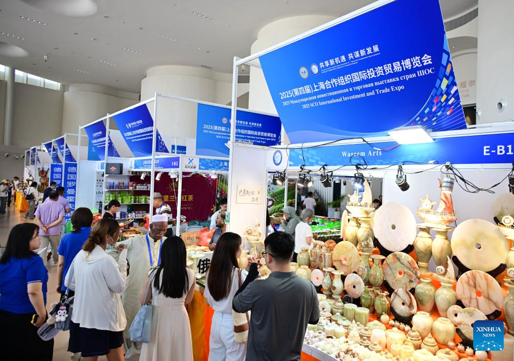 People visit the 2025 Shanghai Cooperation Organization (SCO) International Investment and Trade Expo in Qingdao, east China's Shandong Province, July 18, 2025. Under the theme "Sharing New Opportunities, Seeking New Common Development," the expo kicked off on Friday in Qingdao. (Xinhua/Li Ziheng)