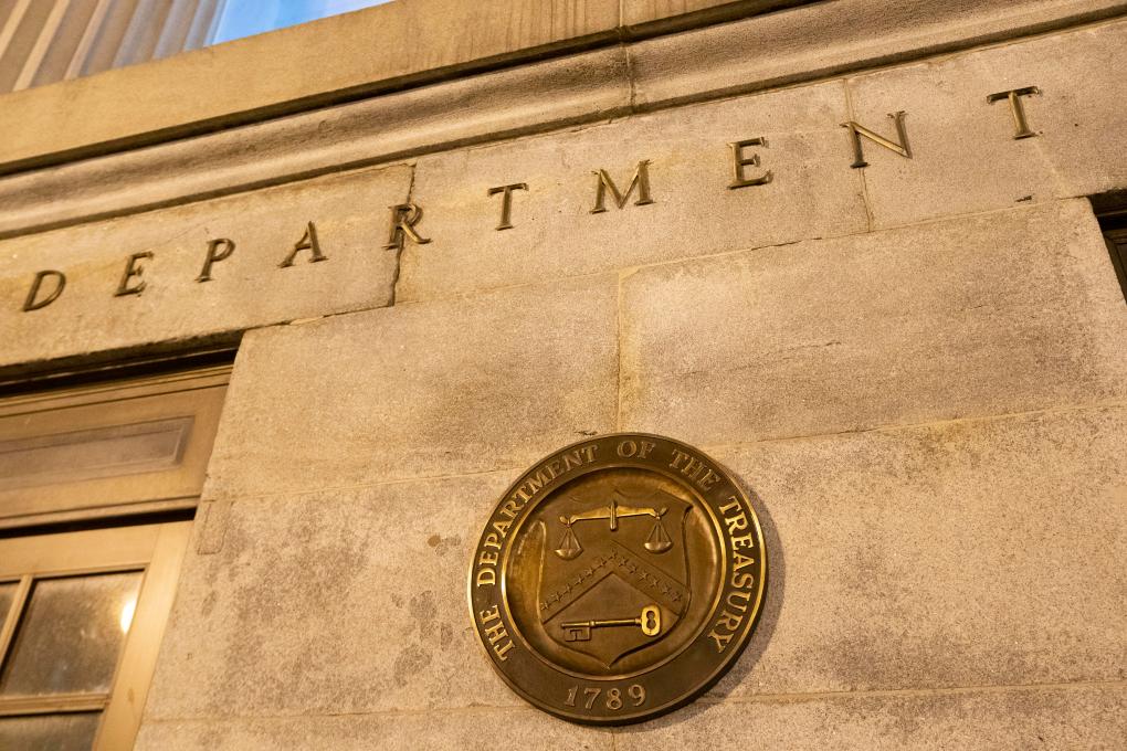 Photo taken on Feb. 28, 2022 shows the U.S. Department of the Treasury in Washington, D.C., the United States. (Xinhua/Liu Jie)