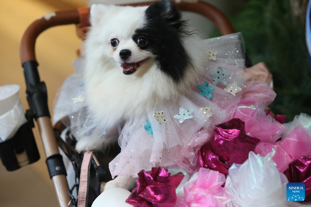 A dog attends a pet fashion show event held in a shopping mall in Bangkok, Thailand, July 20, 2025. (Xinhua/Rachen Sageamsak)