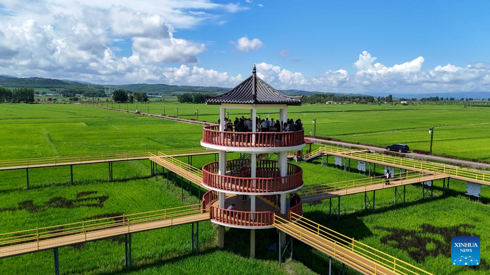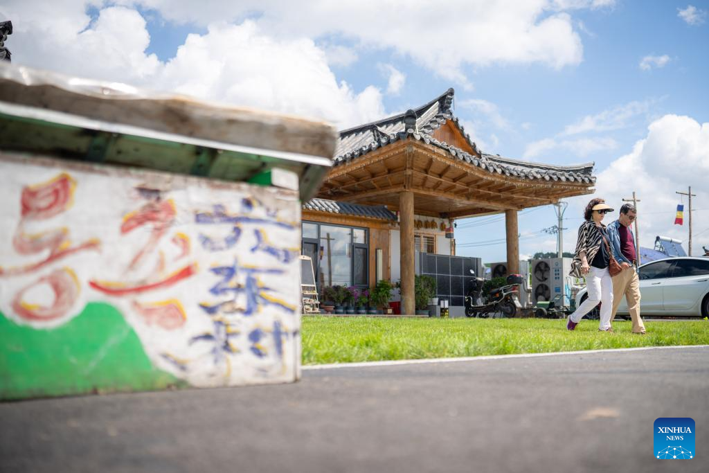 People visit the Guangdong Village, Helong City, northeast China's Jilin Province, July 18, 2025. Guangdong, a border village in Jilin Province of northeast China, received over 200,000 visits in 2024, accumulating an income of over 1 million yuan (about 139,317 U.S. dollars). (Xinhua/Shao Zedong)