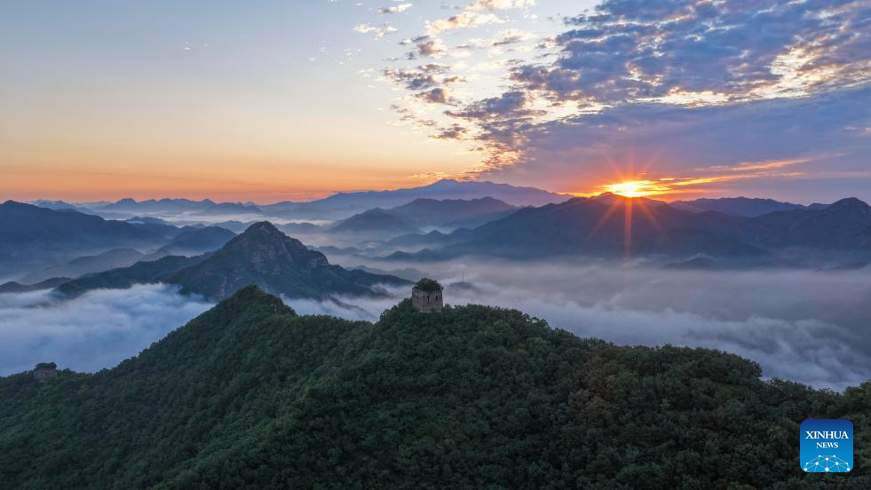 An aerial drone photo taken on July 21, 2025 shows a view of the Yumuling section of the Great Wall in Qianxi County, north China's Hebei Province. (Photo by Liu Mancang/Xinhua)