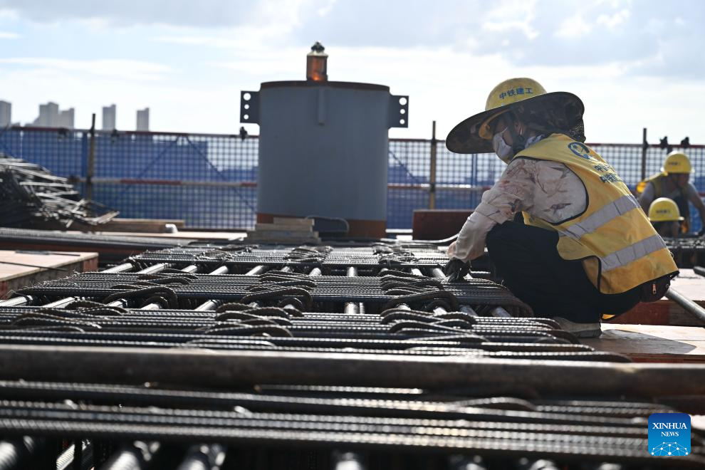 A worker works at the construction site of the Nantong Railway Station in Nantong, east China's Jiangsu Province, July 21, 2025. The station is along a high-speed railway linking Shanghai, Nanjing of Jiangsu Province and Hefei of Anhui Province in east China. (Xinhua/Ji Chunpeng)