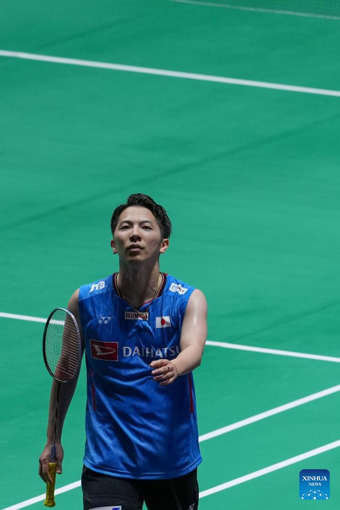 Watanabe Koki of Japan competes during the men's singles round of 32 match between Watanabe Koki of Japan and Prannoy Haseena Sunil Kumar of India at the China Open 2025 badminton tournament in Changzhou, east China's Jiangsu Province, July 22, 2025. (Xinhua/Li Bo)