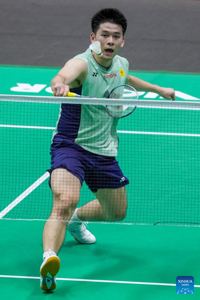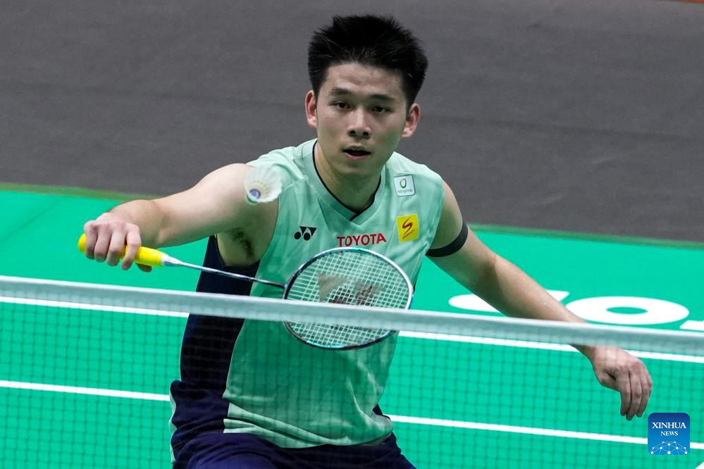 Kunlavut Vitidsarn of Thailand competes during the men's singles round of 32 match between Kunlavut Vitidsarn of Thailand and Alwi Farhan of Indonesia at the China Open 2025 badminton tournament in Changzhou, east China's Jiangsu Province, July 22, 2025. (Xinhua/Li Bo)
