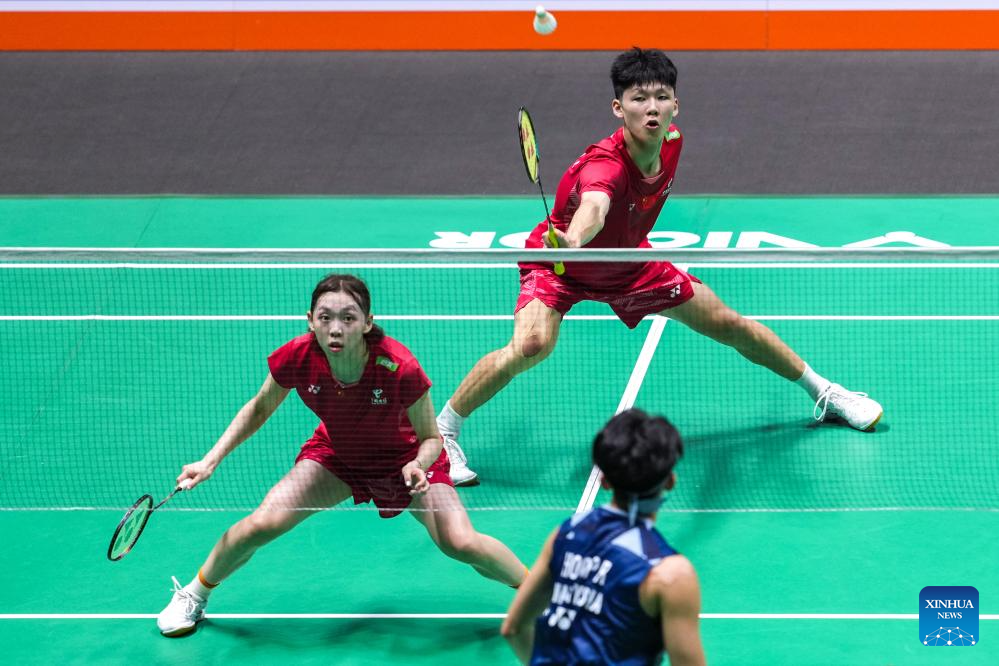 Gao Jiaxuan/Wu Mengying (2nd R) of China compete during the mixed doubles round of 32 match between Gao Jiaxuan/Wu Mengying of China and Hoo Pang Ron/Cheng Su Yin of Malaysia at the China Open 2025 badminton tournament in Changzhou, east China's Jiangsu Province, July 22, 2025. (Xinhua/Li Bo)