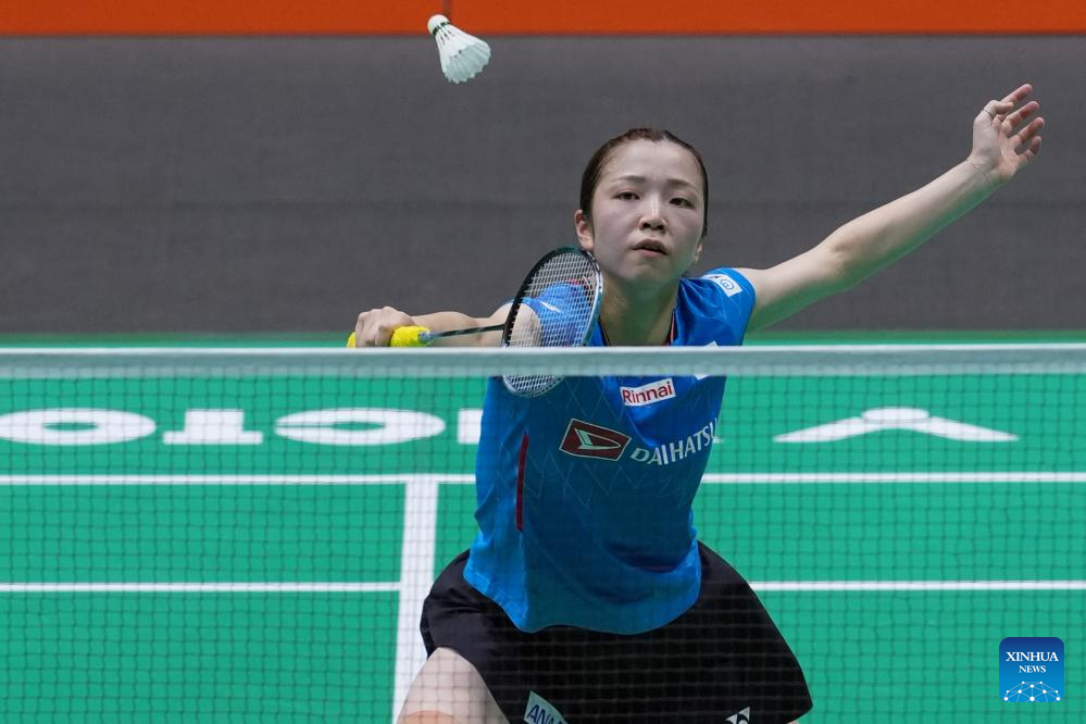 Nidaira Natsuki of Japan competes during the women's singles round of 32 match between Han Yue of China and Nidaira Natsuki of Japan at the China Open 2025 badminton tournament in Changzhou, east China's Jiangsu Province, July 22, 2025. (Xinhua/Li Bo)