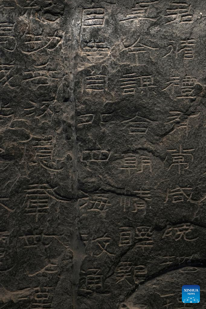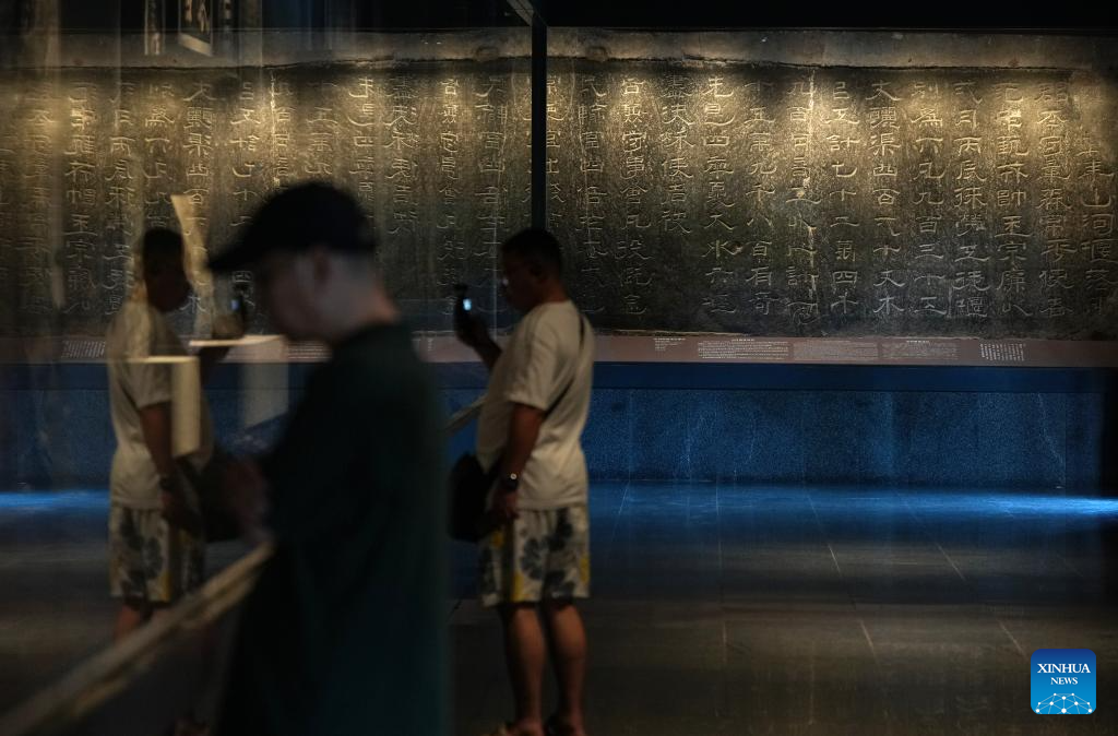People look at the cliff carving at the Hanzhong Museum in Hanzhong, northwest China's Shaanxi Province, July 21, 2025. Hanzhong is nestled between the Qinling and Daba Mountains, with the Hanjiang River, a tributary of the Yangtze River, flowing through the city. For more than 2,300 years, it has served as a vital nexus for the river network and transportation routes connecting the north and south. The city is rich in resources and, unlike other areas in Shaanxi, it shows distinct characteristics in dialect and culinary traditions influenced by southwest China's Sichuan. (Xinhua/Li Yibo)