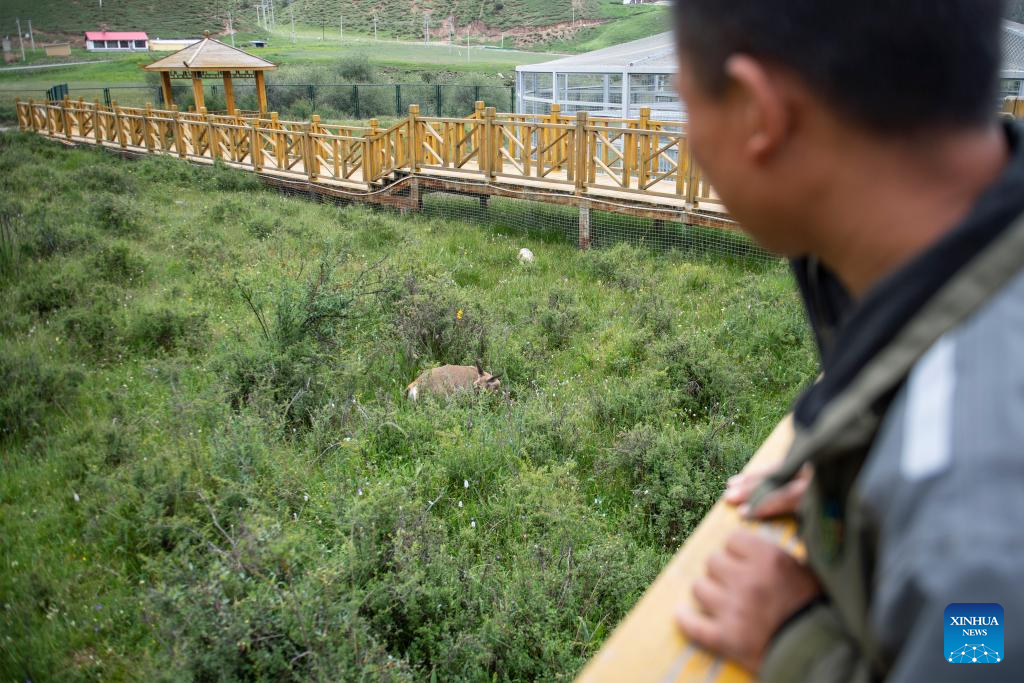 A staff member checks the status of a rescued Tibetan gazelle at the Wildlife Rehabilitation and Breeding Station in Qilian Mountain National Park in northwest China's Qinghai Province, July 23, 2025. The Wildlife Rehabilitation and Breeding Station sits at an altitude of nearly 3,000 meters at the foot of the Qilian Mountains. The station is mainly responsible for wildlife rescue, population monitoring, post-release tracking, public education, and nature-based learning.