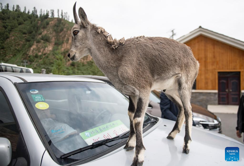 A rescued bharal is seen at the Wildlife Rehabilitation and Breeding Station in Qilian Mountain National Park in northwest China's Qinghai Province, July 23, 2025. The Wildlife Rehabilitation and Breeding Station sits at an altitude of nearly 3,000 meters at the foot of the Qilian Mountains. The station is mainly responsible for wildlife rescue, population monitoring, post-release tracking, public education, and nature-based learning.