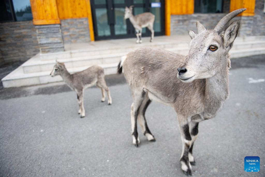 Three rescued bharals are seen at the Wildlife Rehabilitation and Breeding Station in Qilian Mountain National Park in northwest China's Qinghai Province, July 23, 2025. The Wildlife Rehabilitation and Breeding Station sits at an altitude of nearly 3,000 meters at the foot of the Qilian Mountains. The station is mainly responsible for wildlife rescue, population monitoring, post-release tracking, public education, and nature-based learning.