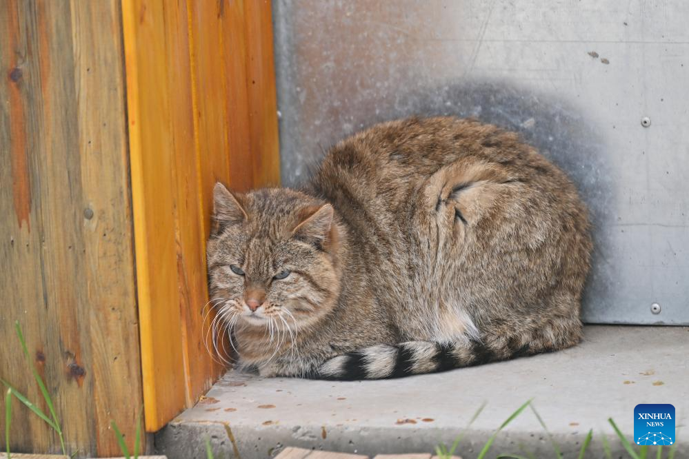A rescued Chinese desert cat is seen at the Wildlife Rehabilitation and Breeding Station in Qilian Mountain National Park in northwest China's Qinghai Province, July 23, 2025. The Wildlife Rehabilitation and Breeding Station sits at an altitude of nearly 3,000 meters at the foot of the Qilian Mountains. The station is mainly responsible for wildlife rescue, population monitoring, post-release tracking, public education, and nature-based learning.