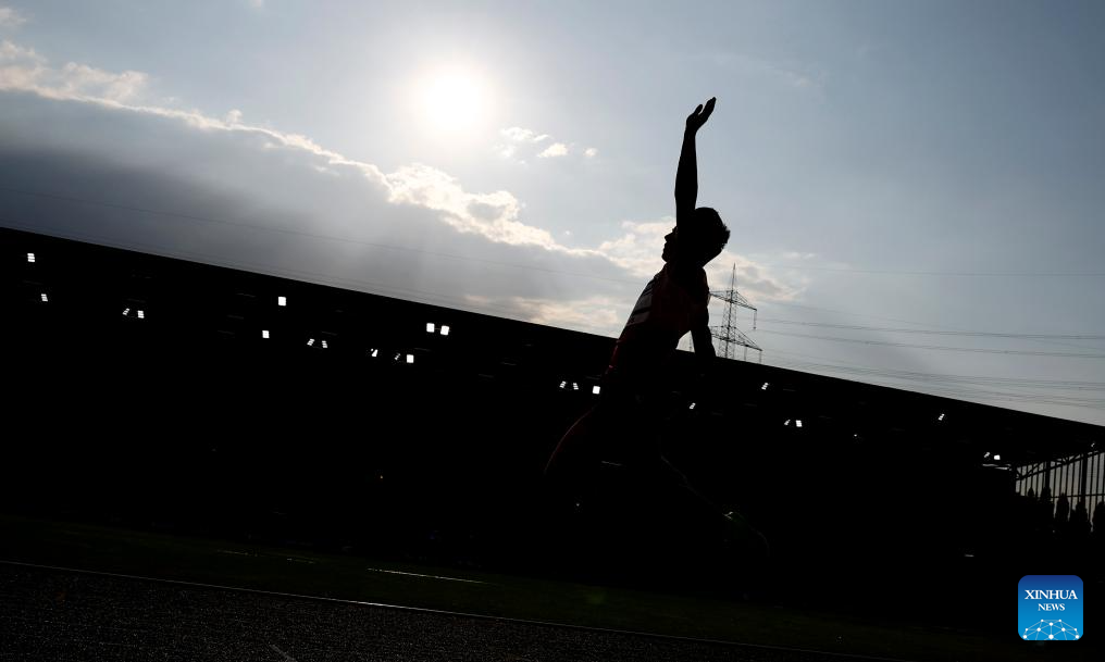 Luka Herden of Germany prepares before the men's long jump final at the Rhine-Ruhr 2025 FISU World University Games in Bochum, Germany, July 24, 2025. (Xinhua/Li Ying)