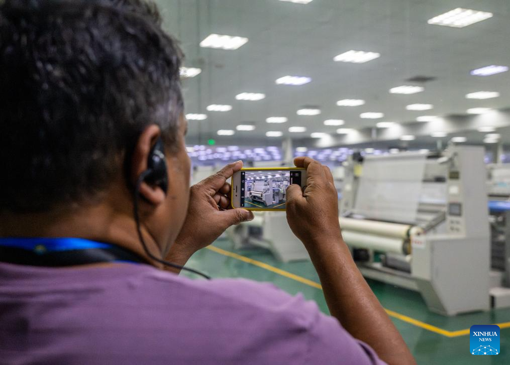 A participant of the Shanghai Cooperation Organization (SCO) Media and Think Tank Summit visits a factory in Linzhou, central China's Henan Province, July 26, 2025. The SCO Media and Think Tank Summit is held in Zhengzhou from July 23 to 27. Participants are invited to visit various locations in Henan during the summit. (Xinhua/Hu Jingwen)
