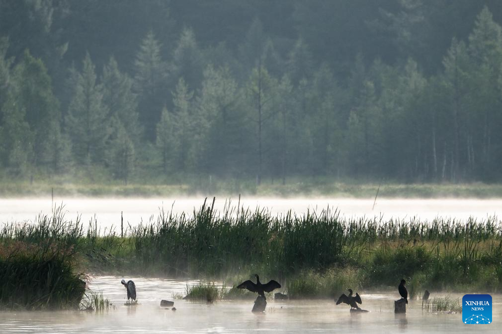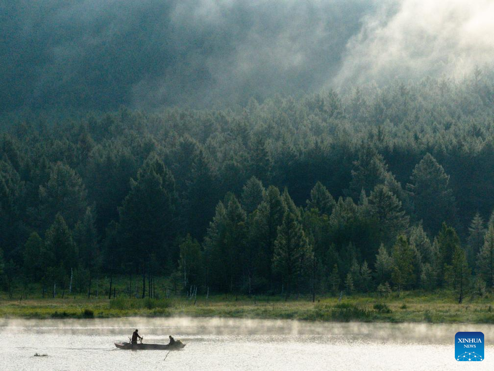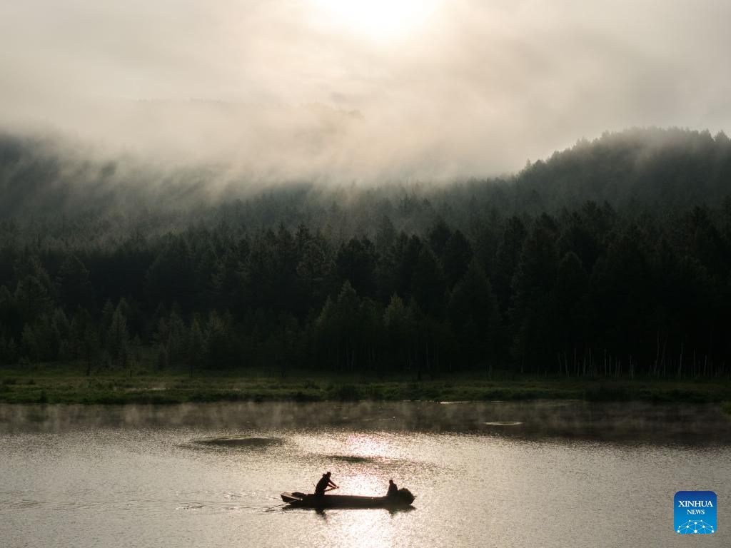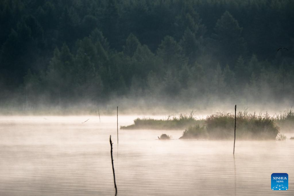 Mist is seen at the Wusulangzi Lake in Arxan City of Hinggan League, north China's Inner Mongolia Autonomous Region, July 28, 2025.