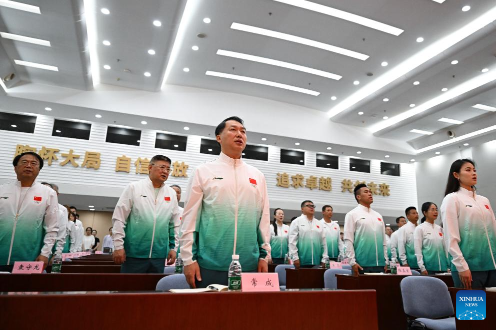 This photo taken on July 29, 2025 shows the view of the Chinese delegation's launch ceremony for the upcoming 2025 Chengdu World Games in Beijing, capital of China. China unveiled a 489-member delegation, including 321 athletes. The team will compete in 152 events across 28 sports, marking China's largest participation in the history of the Games. (Xinhua/Song Yanhua)