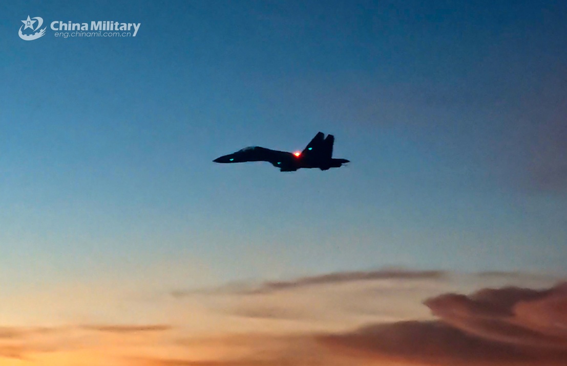 A J-16 fighter jet attached to an aviation brigade with the air force under the Chinese PLA Eastern Theater Command flies towards the designated airspace during a nighttime flight training exercise in early July, 2025. (eng.chinamil.com.cn/Photo by Zheng Hanyi)