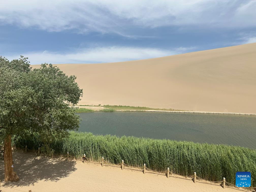 LANZHOU, July 31 (Xinhua) -- Crescent Spring, a famed desert oasis in northwest China's Gansu Province, has recorded its highest water level and largest surface area in over 20 years, signaling a major victory in ecological restoration efforts.