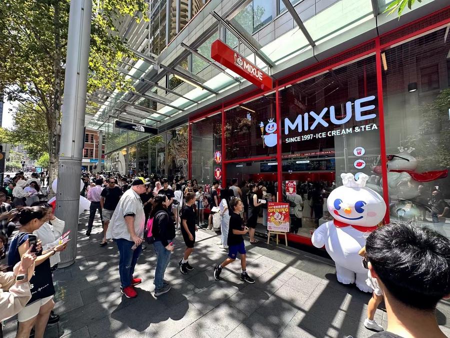 This file photo shows people lining up at a shop of Mixue, a Chinese bubble tea brand, in Sydney, Australia. (Xinhua)