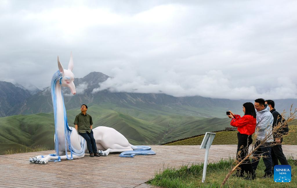 Kunlun Mountains scenic area in NW China's Xinjiang attracts visitors during summer vacation