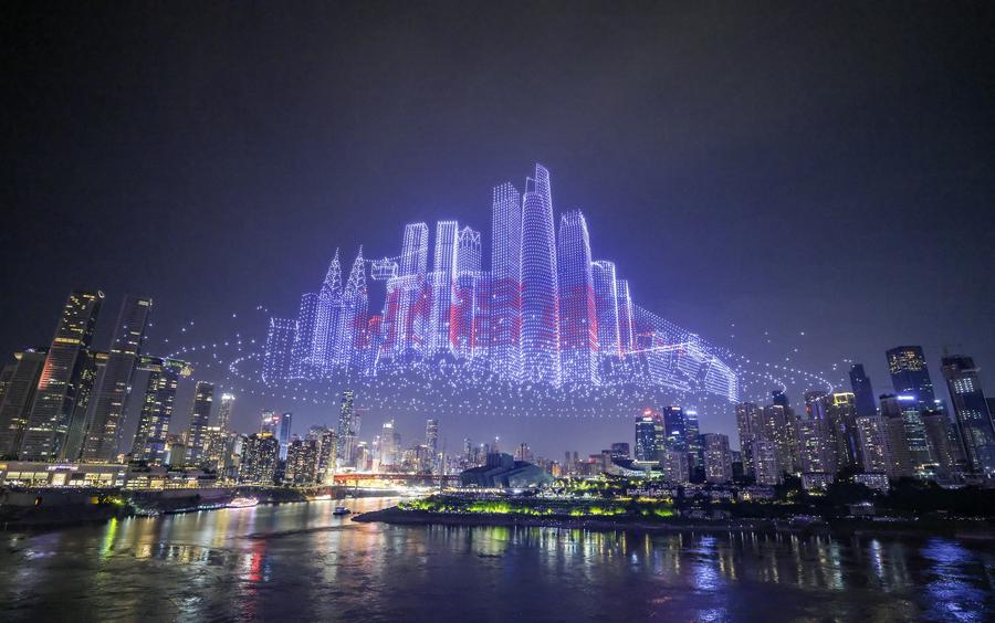 CHONGQING, Aug. 10 (Xinhua) -- As more than 5,000 drones soared into the night sky over southwest China's Chongqing Municipality, they formed a dazzling array of vibrant patterns and shapes that mesmerized the spectators below.