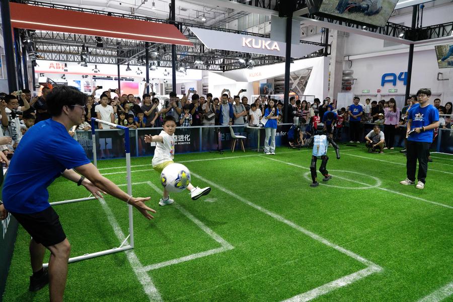 Unitree Robotics, headquartered in east China's Hangzhou, has brought its latest types of humanoid R1 and quadrupedal A2 robots to this expo. However, the crowd favorite has been a boxing match performed by two latest upgraded G1 robots. The mechanical boxers punched and defended like real human fighters, while getting up to continue even after being knocked down.